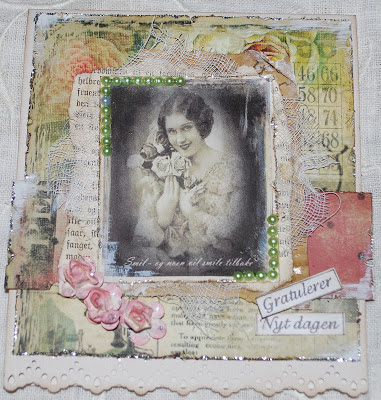 Posen er malt med hvit acrylmaling og rosene har glitterlim på.